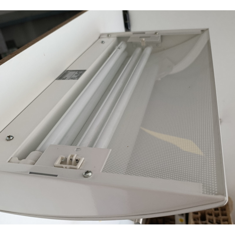 lampada da parete in metallo verniciato microforato. N.B. LA LAMPADA VIENE FORNITA COMPLETA DI 2 LAMPADINE FLUORESCENTI 36W 2G11.