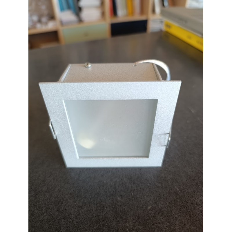 faretto da incasso con struttura in metallo e diffusore in vetro. Necessita di essere alimentato con trasformatore 12V da acquistare a parte.