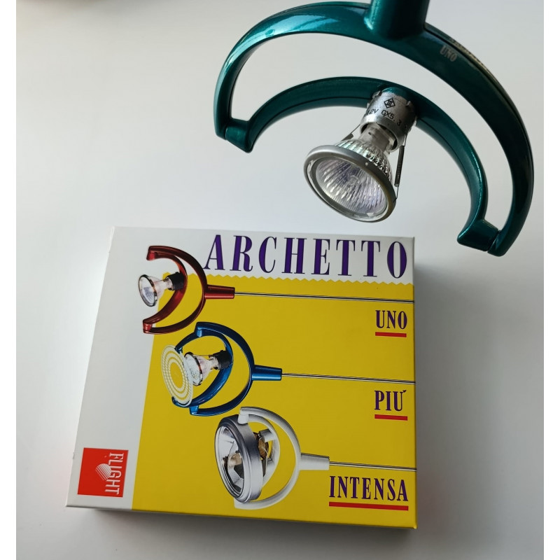 faretto orientabile per binario fornito con tige ( disponibili 2 tige cm.25 e 2 tige cm. 50 da indicare la scelta al momento dell'ordine) adattatore per binario escluso