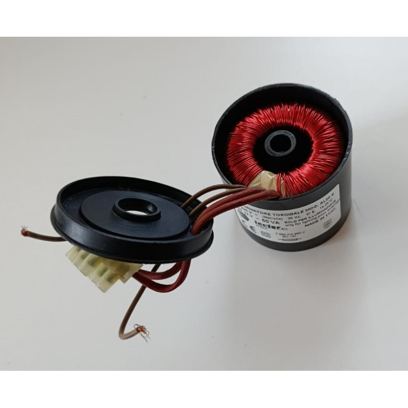 trasformatore toroidale carenato 50W 12V ; diametro cm. 6,5 altezza cm. 6