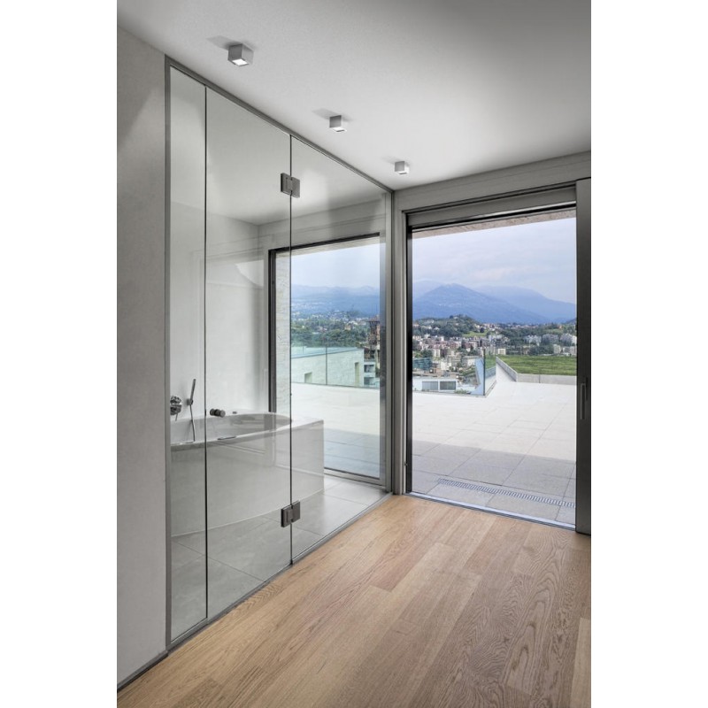 lampada da soffitto in alluminio e vetro, disponibile nel colore bianco . Sorgente luminosa a led 10w, 595 lumen, 3000K