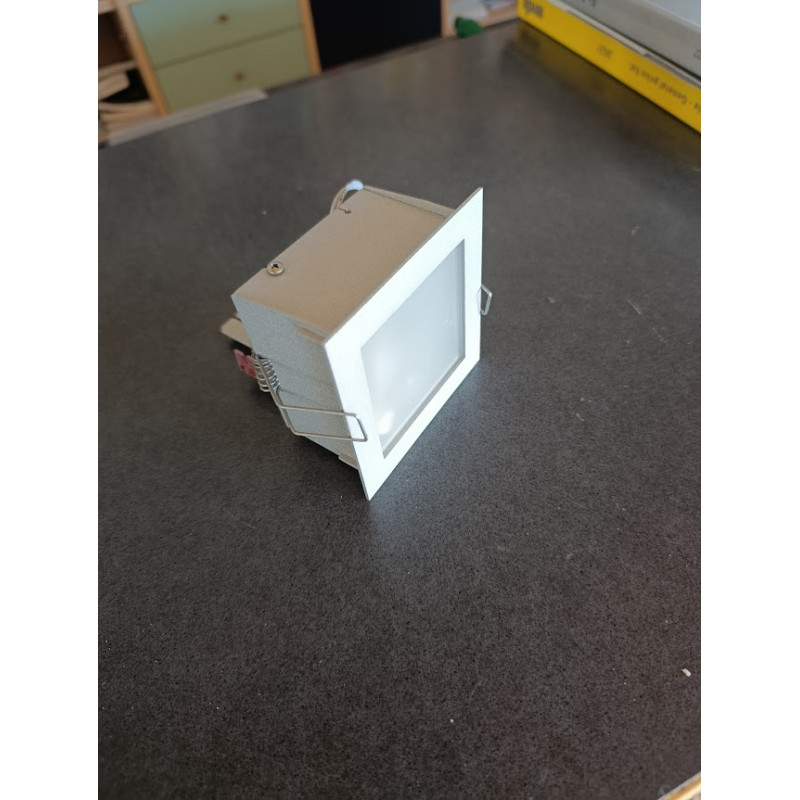 faretto da incasso con struttura in metallo e diffusore in vetro. Necessita di essere alimentato con trasformatore 12V da acquistare a parte.
