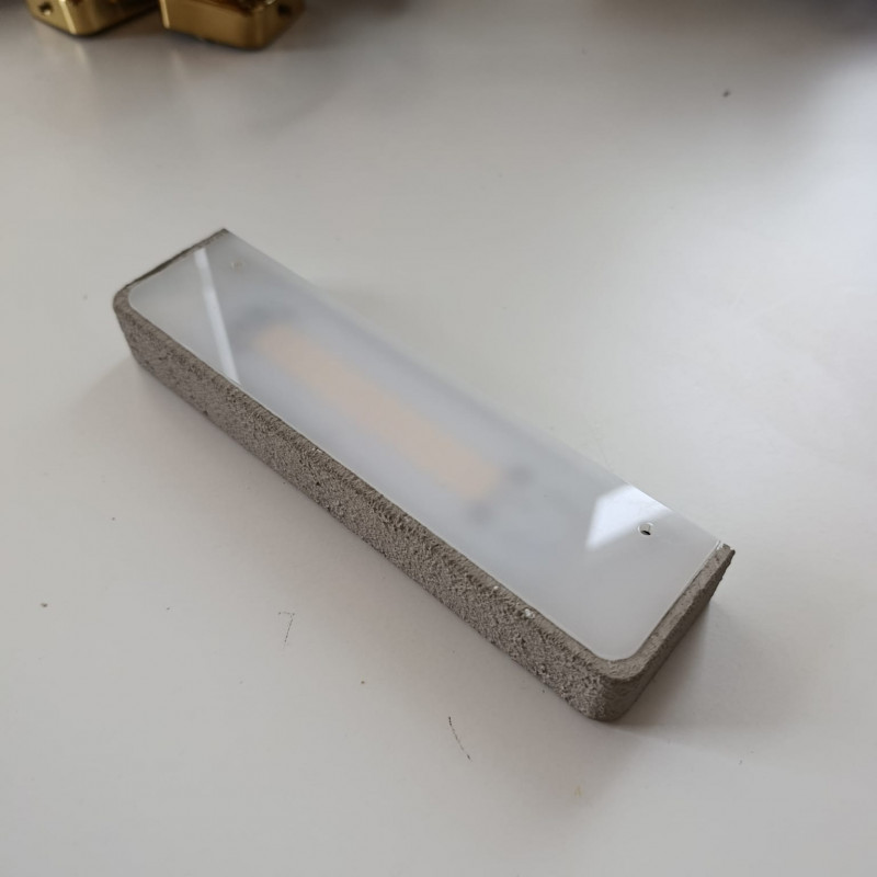 Lampada da parete in alluminio ricavato dal pieno verniciato a polveri nel colore , nero e finitura cemento. Diffusore in PMMA bianco. Sorgente luminosa a led 13,5W, 1450 lumen, 3000K. La lampada può essere spedita senza imballo originale